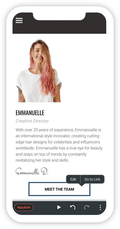Med vår editor kan du redigere nettsiden din fra din egen smarttelefon. Uansett om du er her eller der, fortsett jobben uforstyrret. Fortsett redigeringen på farten.